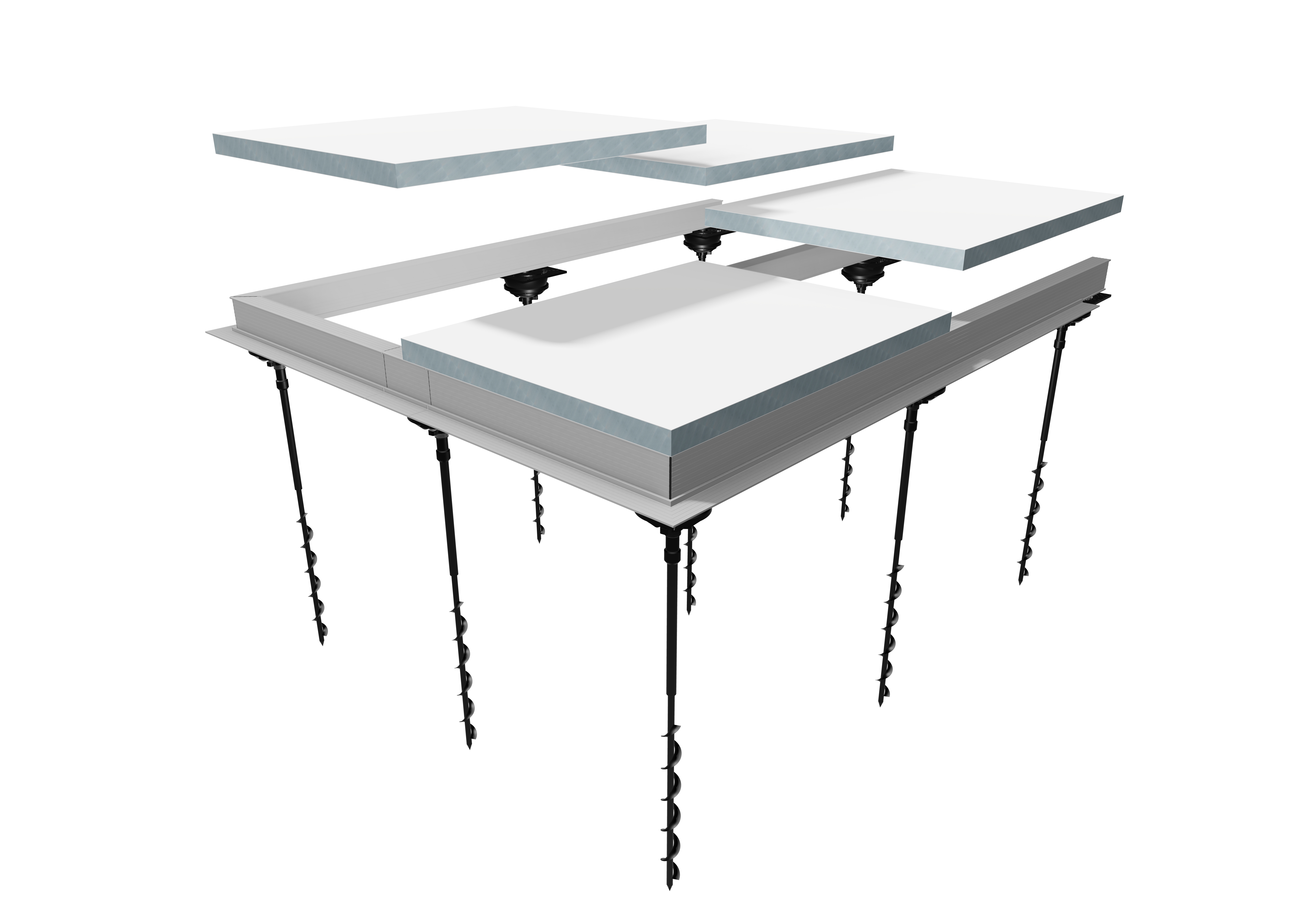 Shire QuickBase is a lightweight, modular foundation system that combines advanced construction techniques with environmental, technical, and economic benefits. It’s based on helical screw piles that support part-recycled plastic ground beams, connected by push-fit joints to create a robust frame. This innovative foundation solution ensures high strength and durability, all while eliminating the need for mass concrete foundations.